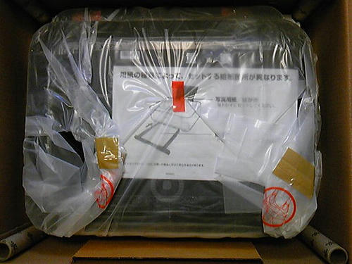まだ薄いビニールシートの保護材にくるまれています。