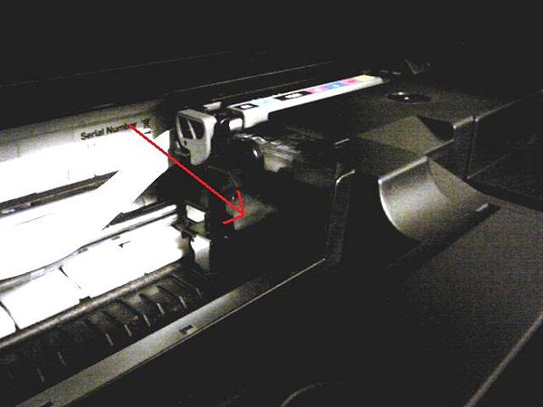 プリンタの中を見ると、インクがいつもなら端にあるのに、