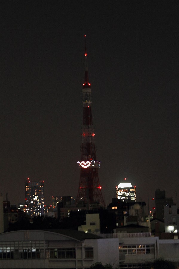 東京タワーにハートのイルミネーションが浮かんだのが撮れた。