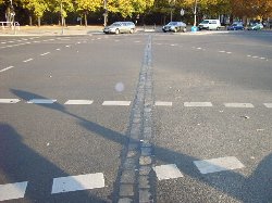 (写真は、ベルリンの壁があったことを示すライン)
