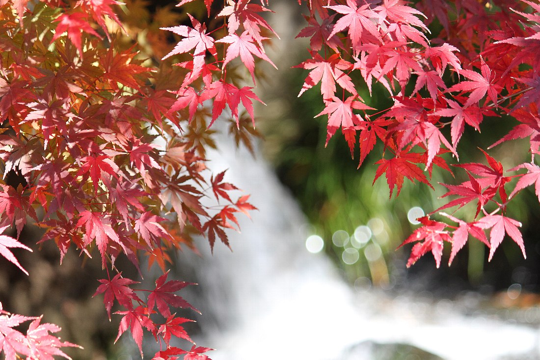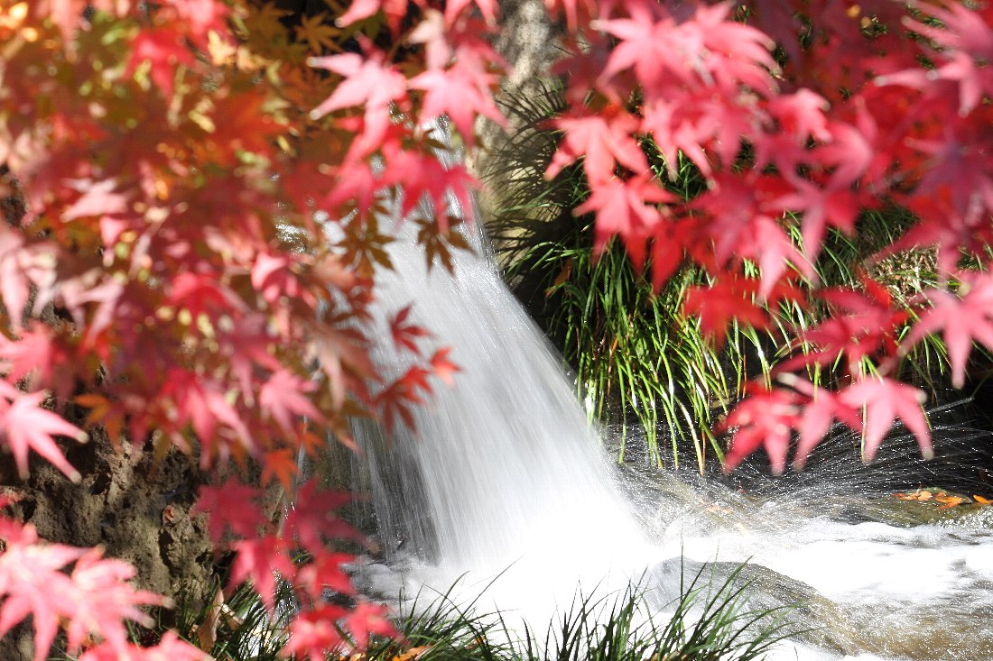 下の写真は、滝にピントをスローシャッターで合わせ、