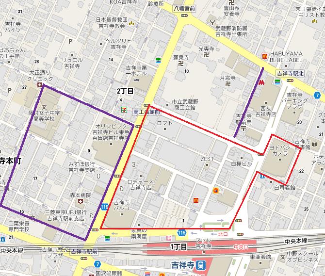 でも、ちょっとはずれて紫で囲んだ場所や通りに行ってみたら